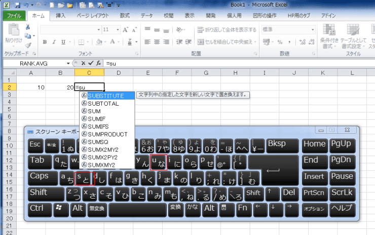 - スクリーンキーボードを利用すると、マウスから文字や記号が入力することができます。