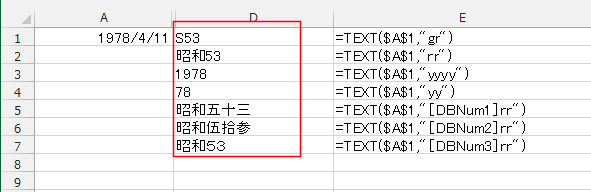 なお、年はYEAR関数、月はMONTH関数、日はDAY関数でも取り出すことができます。 - 例えば、 しょうわ53.4.11 としたいときには、