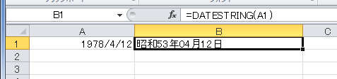 - B1セル =TEXT($A$1,"yyyy年m月d日")