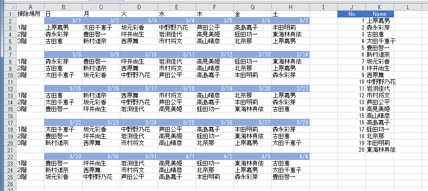 - 当サイトの掲示板にて掃除当番表を作成したいとの質問がありました。