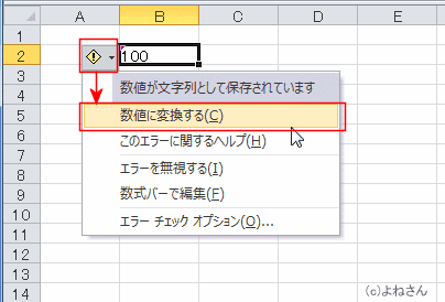 よねさんのExcelとWordの使い方|エクセル2010基本講座:目次|文字列の数字を数値に変換したい