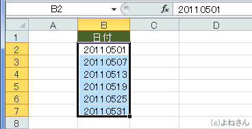 - 20110501 のように日付を数値で入力されているものがあったりします。