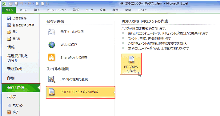 よねさんのExcelとWordの使い方|エクセル2010 基本講座:目次|ブックの操作とブックの共有|ExcelからPDFファイルを作成する