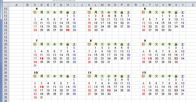 ここではExcelで作成した年間カレンダーのファイルを開きました