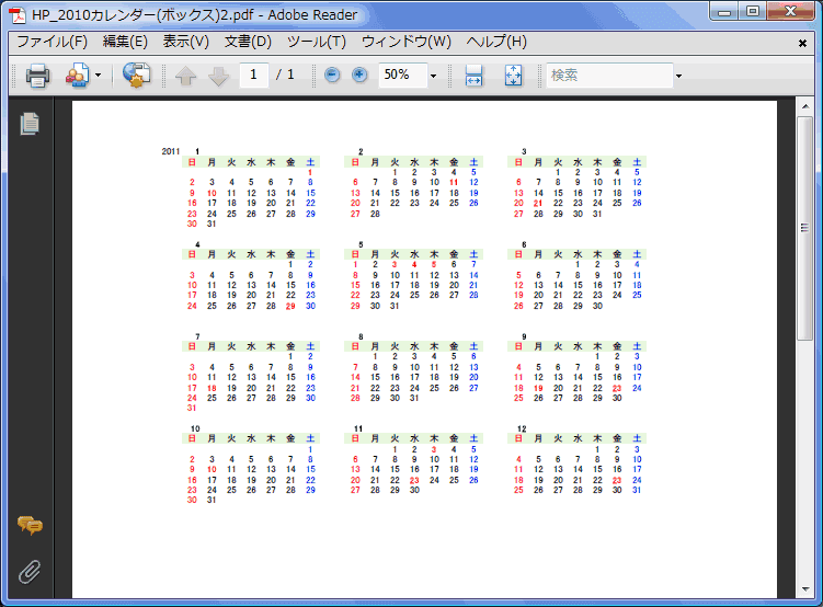 - Adobe Readerが起動し、作成したPDFファイルが表示されました。