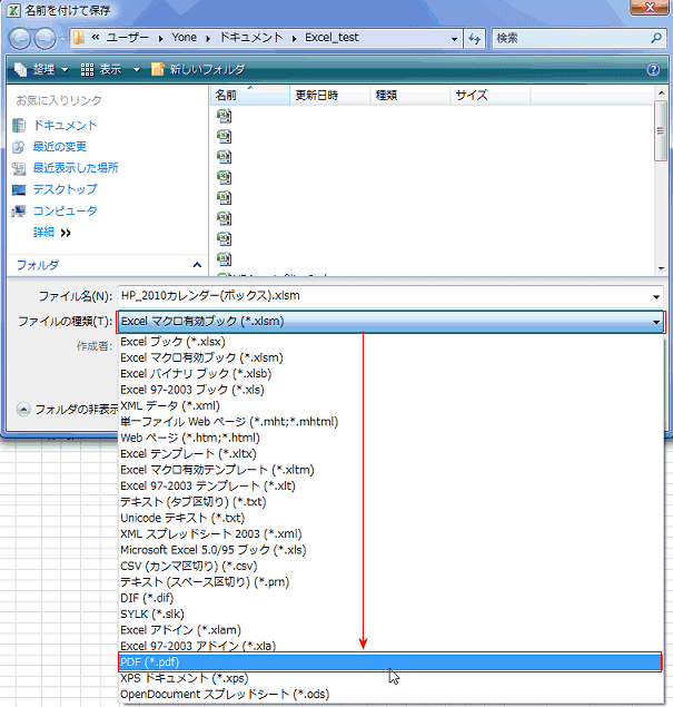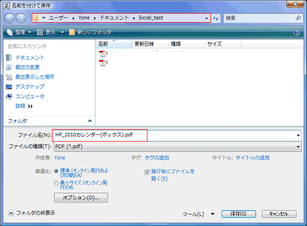 ファイルの種類が PDF(*.pdf) となっているのが確認できます。