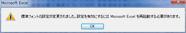 - 標準フォントの設定を変更したら、有効にするには再起動する必要がある旨のメッセージが表示されます。