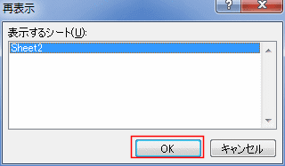 - 再表示するシート名を選択して[OK]ボタンをクリックします。