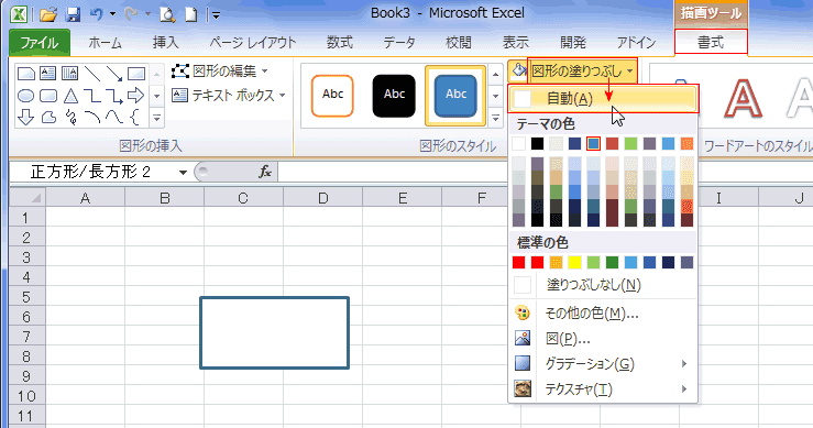 - 新たにExcel2010を起動すると、設定変更した書式で図形が作成できます。