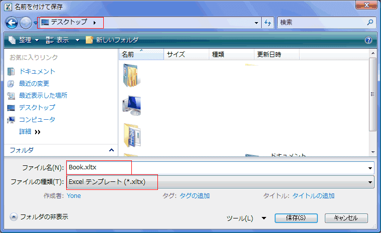 - 保存するファイル名を「book.xltx」とします。