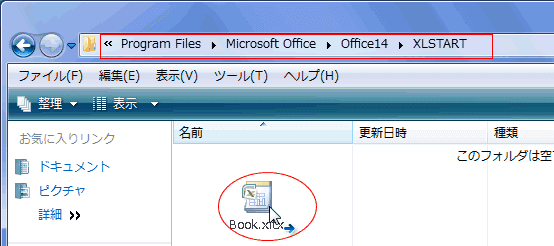 - Excel2007の場合はC:\Program Files\Microsoft Office\Office12\XLStartとなります。