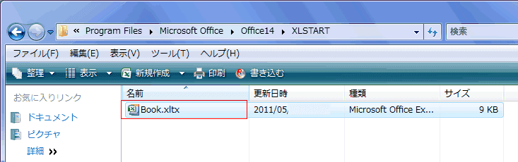 C:\Program Files\Microsoft Office\Office14\XLStart へ保存する方法