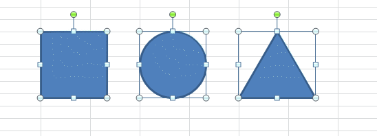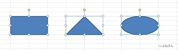 - 図形のハンドルが表示される枠線がセルの枠線に合わされます。円や三角形の場合は下図のようになります。