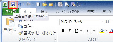 - クイックアクセスツールバーの[上書保存]ボタンをクリックします。