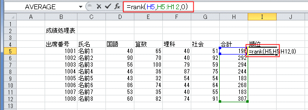 - (メモ)Excel2010以降ではRANK.AVG関数とRANK.EQ関数が追加されました。