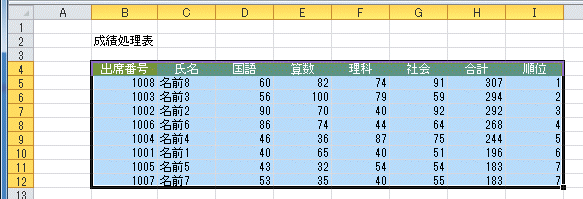 ここでは、B4:I12セルを選択します。
