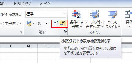 - [ホーム]タブの小数点以下の表示桁数を増やす/減らす ボタンをクリックして、適切な桁数に調整します。