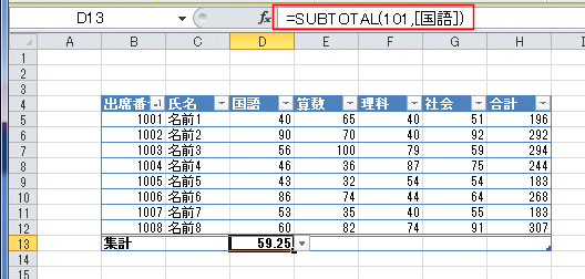 よねさんのExcelとWordの使い方|Excel2010入門編:目次|Excel2010(エクセル2010)入門編:テーブルで集計行を表示する