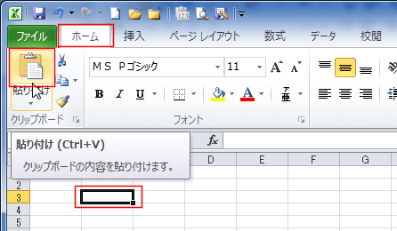 下図では B3セルを選択しています。 ショートカットキーは [Ctrl]+[V]です。