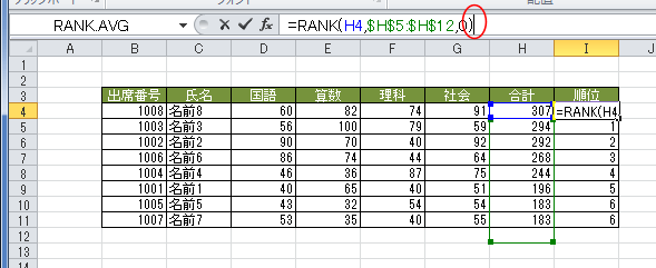 数式バーにカーソルが表示され、数式で参照しているセル範囲がカラーリファレンスで表示されます。