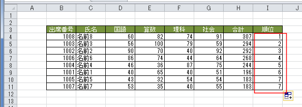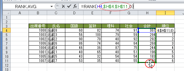 緑の枠線をドラッグして適切な範囲(H4:H11)に移動します。