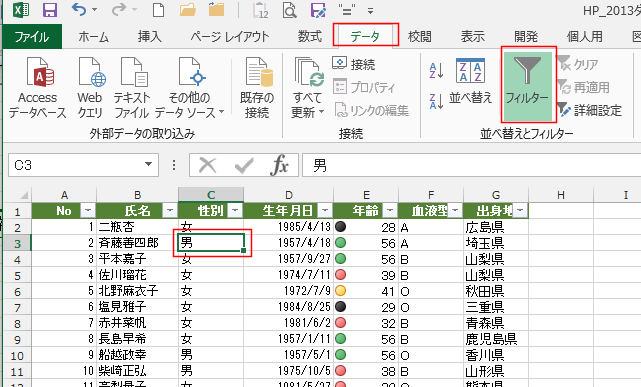 エクセル2013基本講座:複数の条件でデータを抽出したい