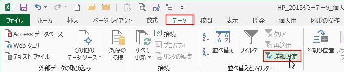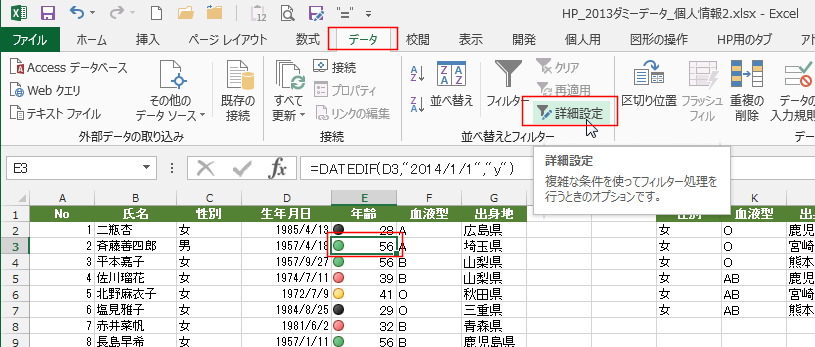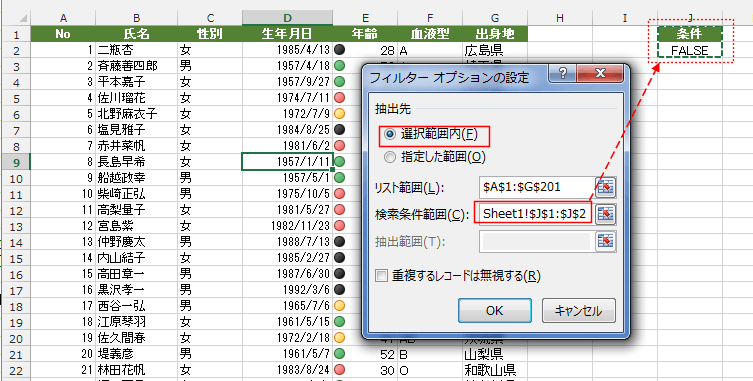 詳細設定で複数の条件でデータを抽出する(数式で条件を書く)
