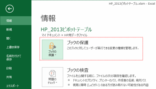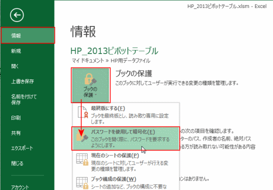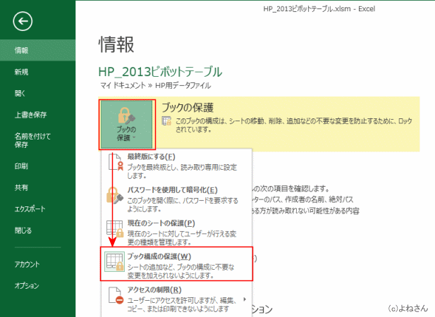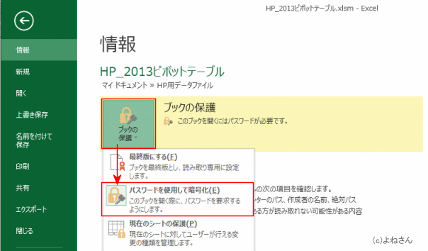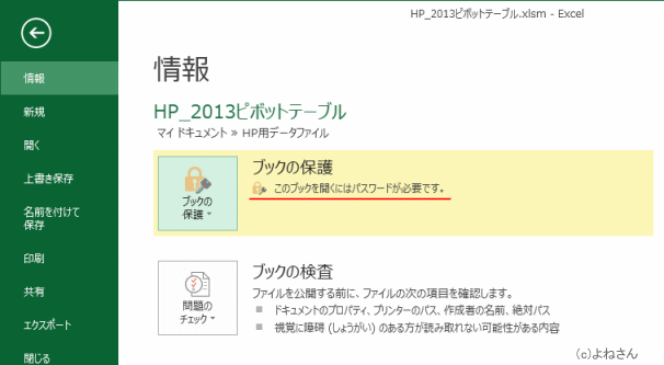 よねさんのExcelとWordの使い方|エクセル2013基本講座|バックステージ ビュー|ブックの操作とブックの共有|ブック(ファイル)を保護する