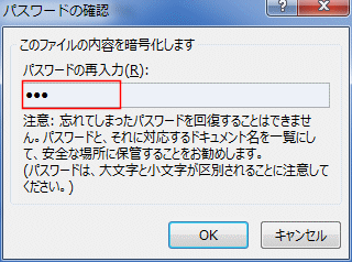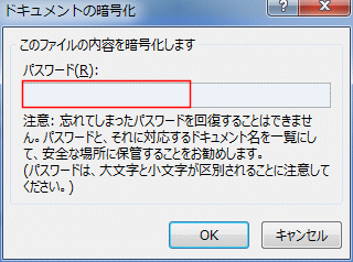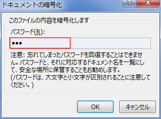 - ドキュメントの暗号化 ダイアログがにスワードが表示された状態で開きます。