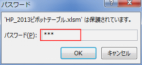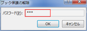 - 「このブックを開くにはパスワードが必要です」と表示され、パスワードが必要になったことが確認できます。