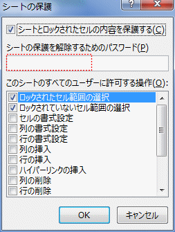 - 初期状態では全てのセルがロック状態になっていますので、ロックを解除しないとすべてのセルが保護対象となります。
