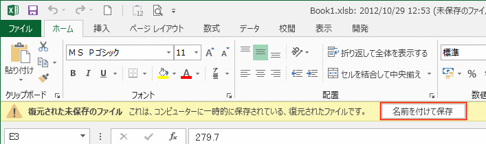 上書き保存などをせずに閉じたケースでは、この機能を使って保存しなおすことができます。
