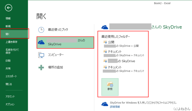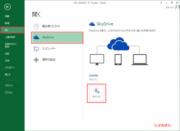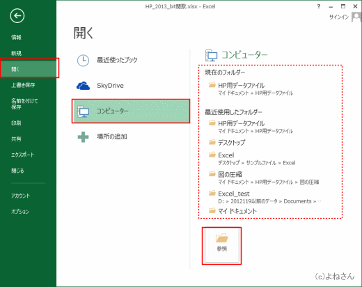 よねさんのExcelとWordの使い方|エクセル2013基本講座:目次|バックステージ ビュー|ブックの操作とブックの共有|保存したファイル(ブック)を開く
