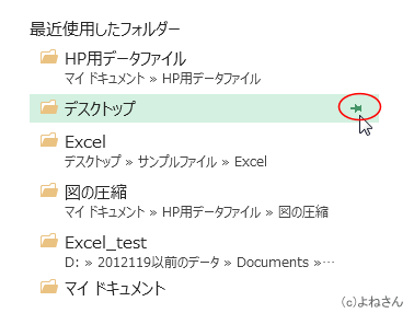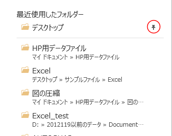 最近使用したフォルダーの一覧にフォルダー名を固定する Topへ