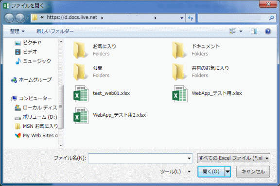 - 「○○○さんのSkyDrive」をクリックしてSkyDriveを開くことができます。
