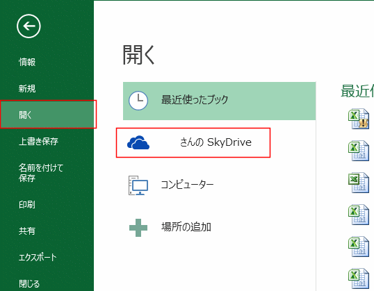 - [開く]を選択すると、「SkyDrive/OneDrive」が表示されています。