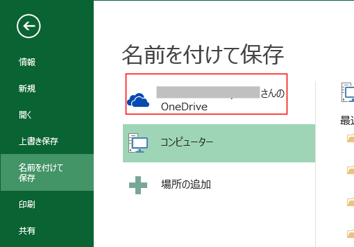 - [名前を付けて保存]を選択すると、「SkyDrive/OneDrive」が表示されています。