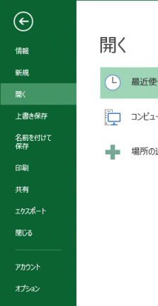 | Excel2013のバックステージビュー |