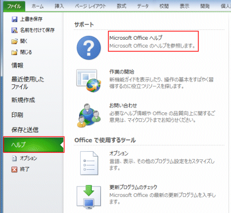 - Excel2010ではバックステージビューに[ヘルプ]があり、「Microsoft Office ヘルプ」というのがありました。
