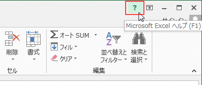 - タイトルバーの右端に[Microsoft Excel ヘルプ]があります。