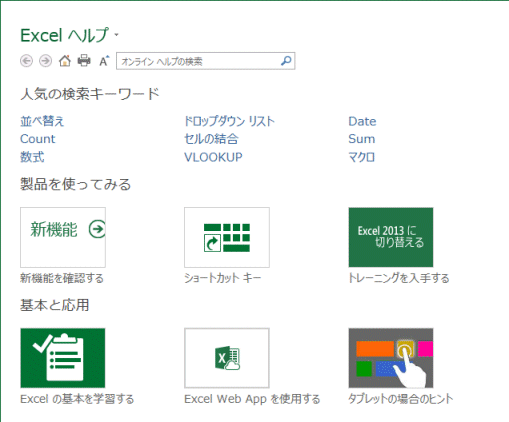 - Excel2013でヘルプを開いてみます。