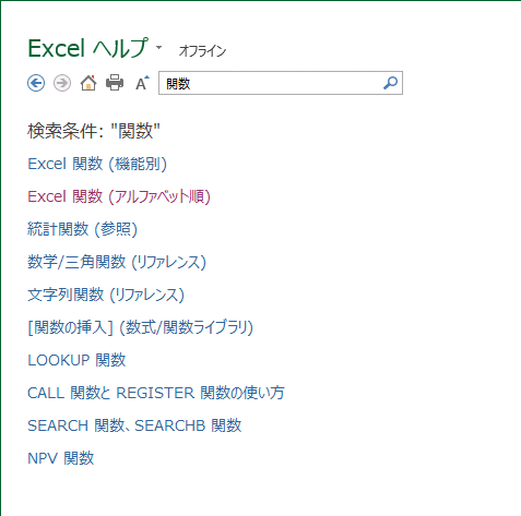 - Excel ヘルプの横に「オフライン」と表示されます。