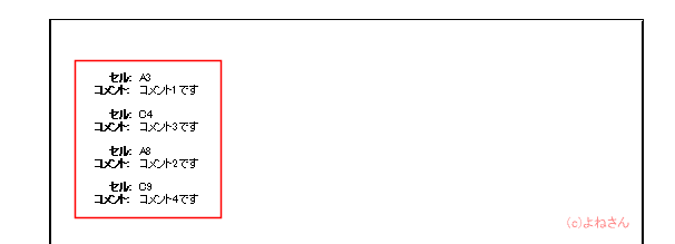 - シートの末尾にコメントのあるセル番地とコメントが印刷できます。