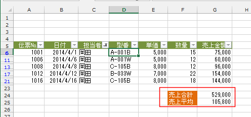 よねさんのExcelとWordの使い方|エクセル2013基本講座:目次|フィルター(データ抽出)|オートフィルター後の合計や平均などの計算について