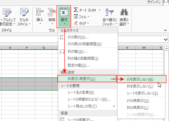 - ヘルプなどでの非表示にするというのは「行を表示しない」という機能を使ったケースになります。