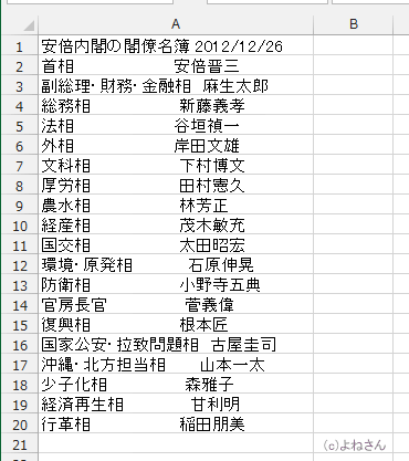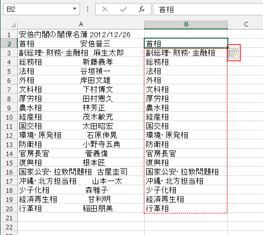 - B2セルに「首相」と入力します。・・・何も起きませんでした。