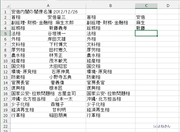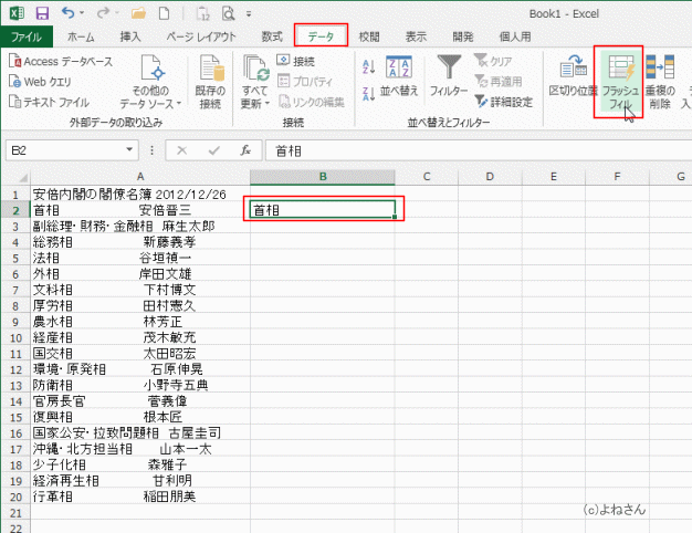 よねさんのExcelとWordの使い方|エクセル2013基本講座:目次|データ/数式/関数の入力|エクセル2013基本講座:フラッシュフィルの使い方