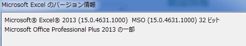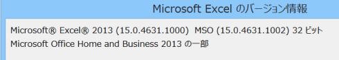- ちなみに、このExcel2013のバージョン情報は下図です。