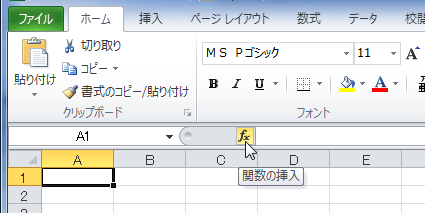 - [関数の挿入]ボタン(fxボタン)をクリックします。