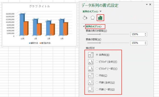 - データ系列の書式で